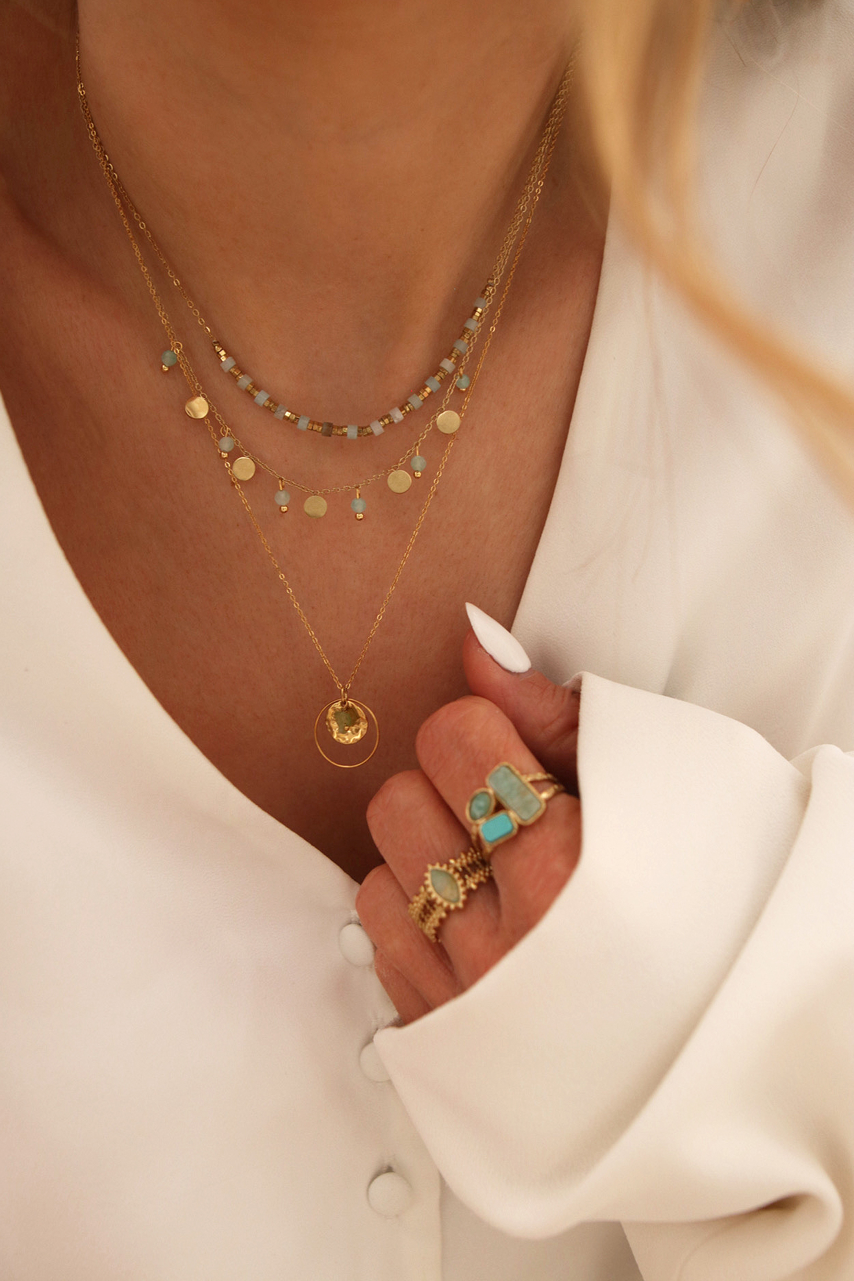Details : stainless steel and amazonite stones